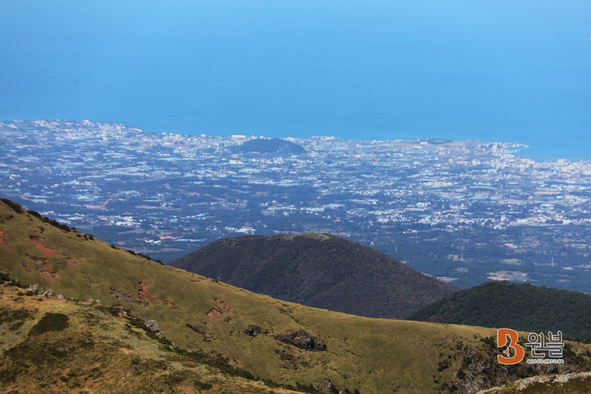10월 어느날 높은 한라산 정상에서 바라보는 제주시내입니다.